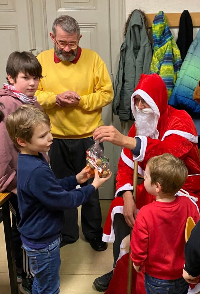 Der Nikolaus war trotzdem so angetan, dass er seinen Sack aufschnürte und Tüten mit kleinen Geschenken an die Kinder verteilte.