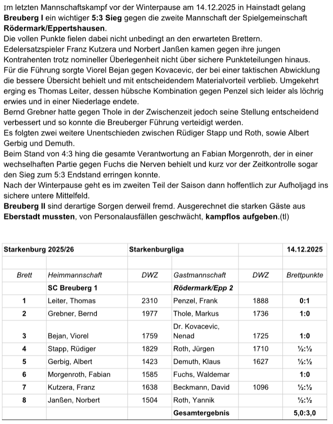 14.12.2025 – Breuberger Schachspieler siegen im Kellerduell